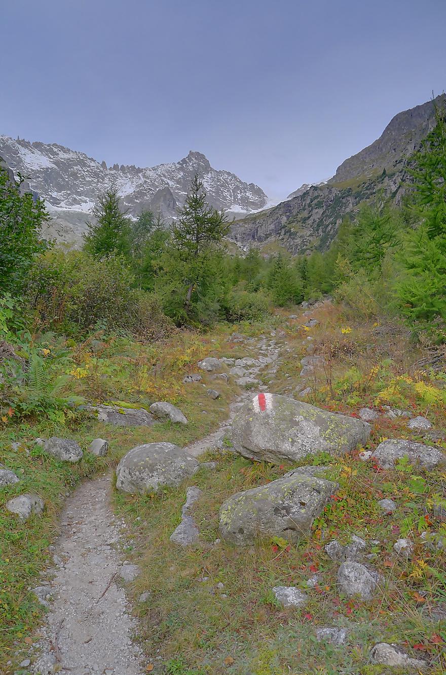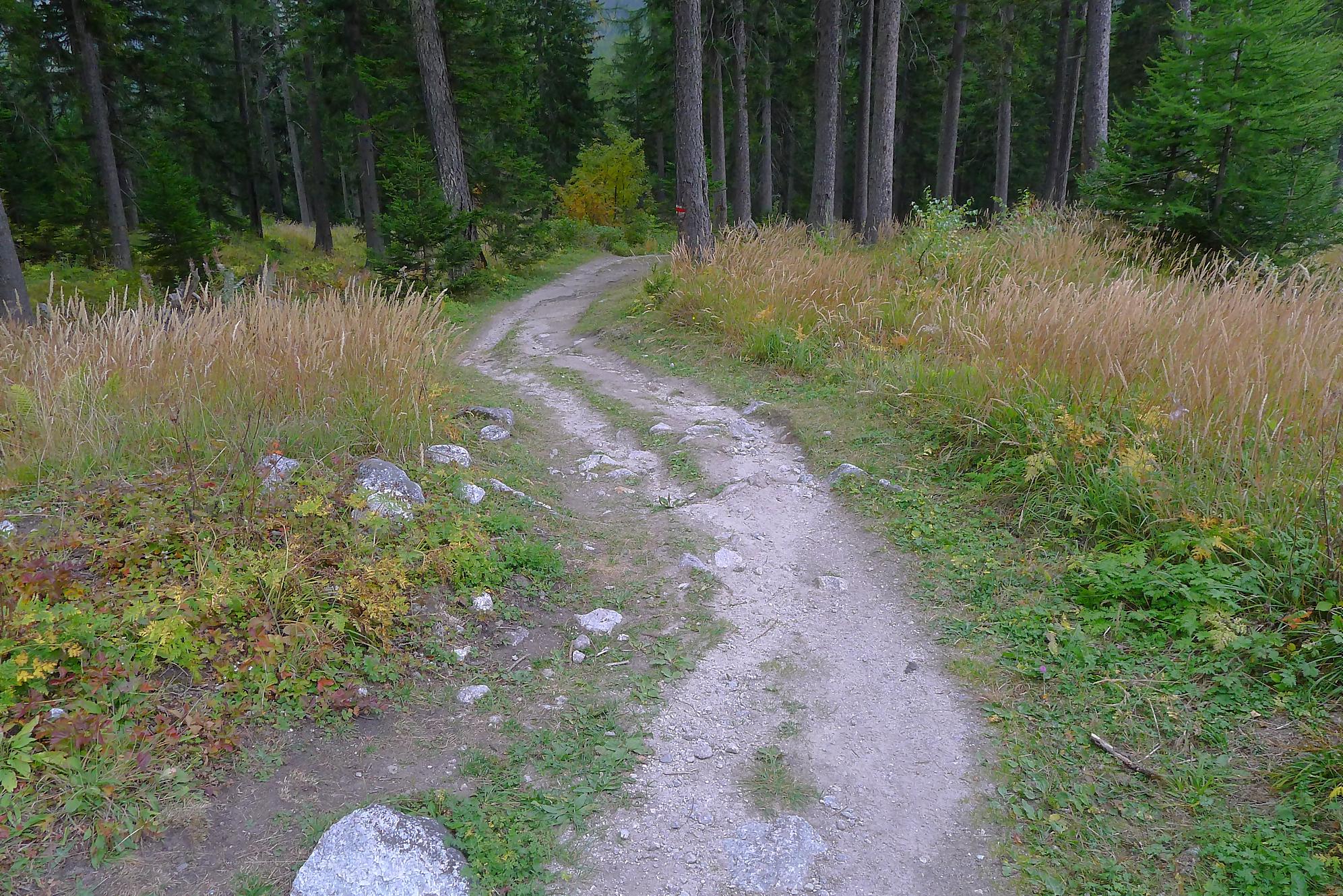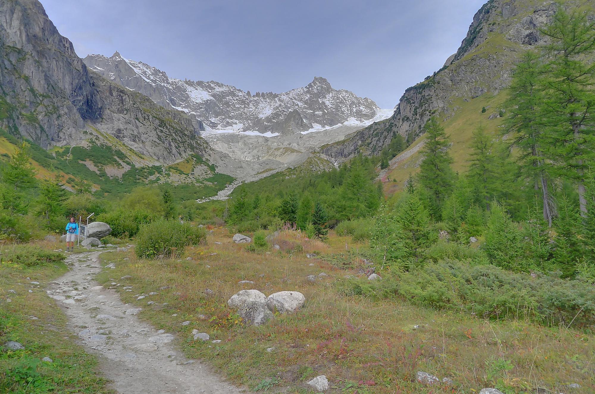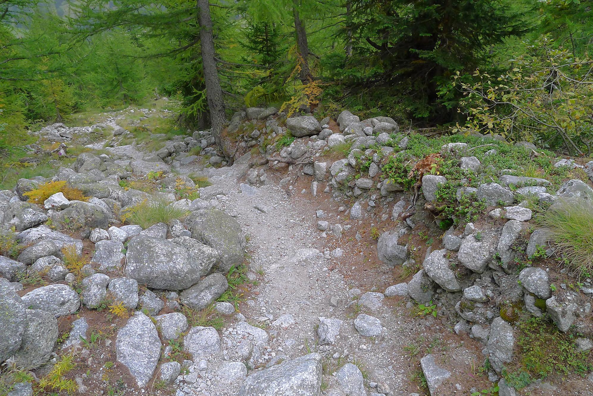 Nous partons depuis le camping de La Fouly, pour traverser une petite forêt. Il y a quelques panneaux touristiques sur des plantes en guise de mise en bouche culturelle. Nous sortons de la forêt pour traverser le lieu-dit Désert. Une animation (cris d’oiseaux) nous fait marquer une pause. C’est juste dommage que les touches d’un cri ne soient pas libellées, ie on appuie sur une touche, sans savoir qu’elle animal nous allons entendre. En gros si tu ne connais rien t’es cuit, et si tu connais tu passes ton chemin !
