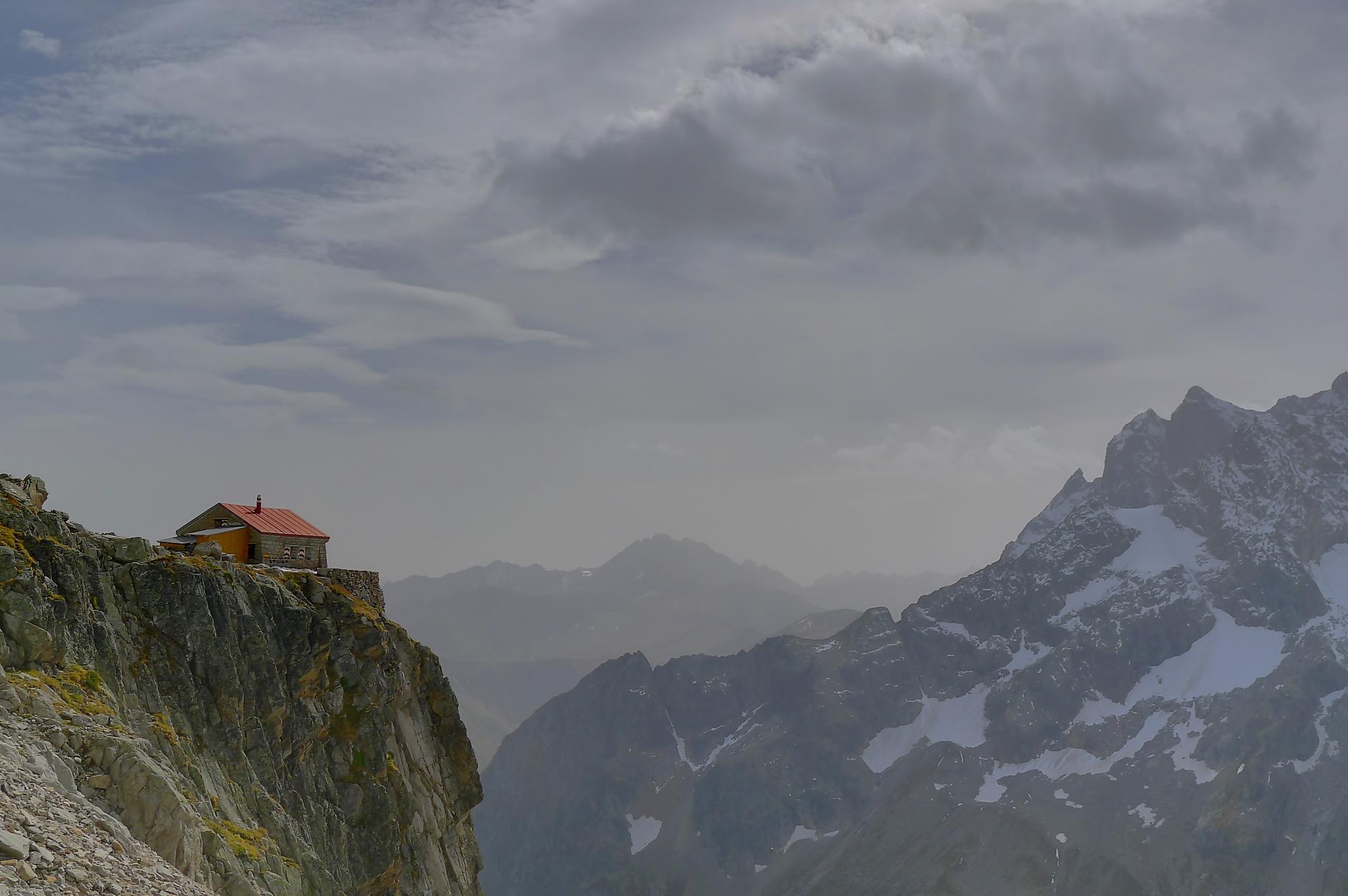 Une météo annoncée en cours de changement et la pluie en embuscade, donc faudrait penser à autre chose qu’une longue randonnée d’altitude. Je retrouve Evelyne et Antoinette et ça n’est qu’en arrivant à Martigny que le choix précis s’est fait. Le Valais central, malgré sa réputation de distributeur à soleil, était sous la brume. Mais que fait Oskar Freysinger devant une telle invasion ? Notre coeur pencha pour la cabane de l’A Neuve dans le Val Ferret. J’avais déjà eu l’occasion d’aller à cette cabane en aout 2007 (époque argentique) et j’avais gardé un bon souvenir de la randonnées et du couple des gardiens (depuis le gardien est décédé en 2009).