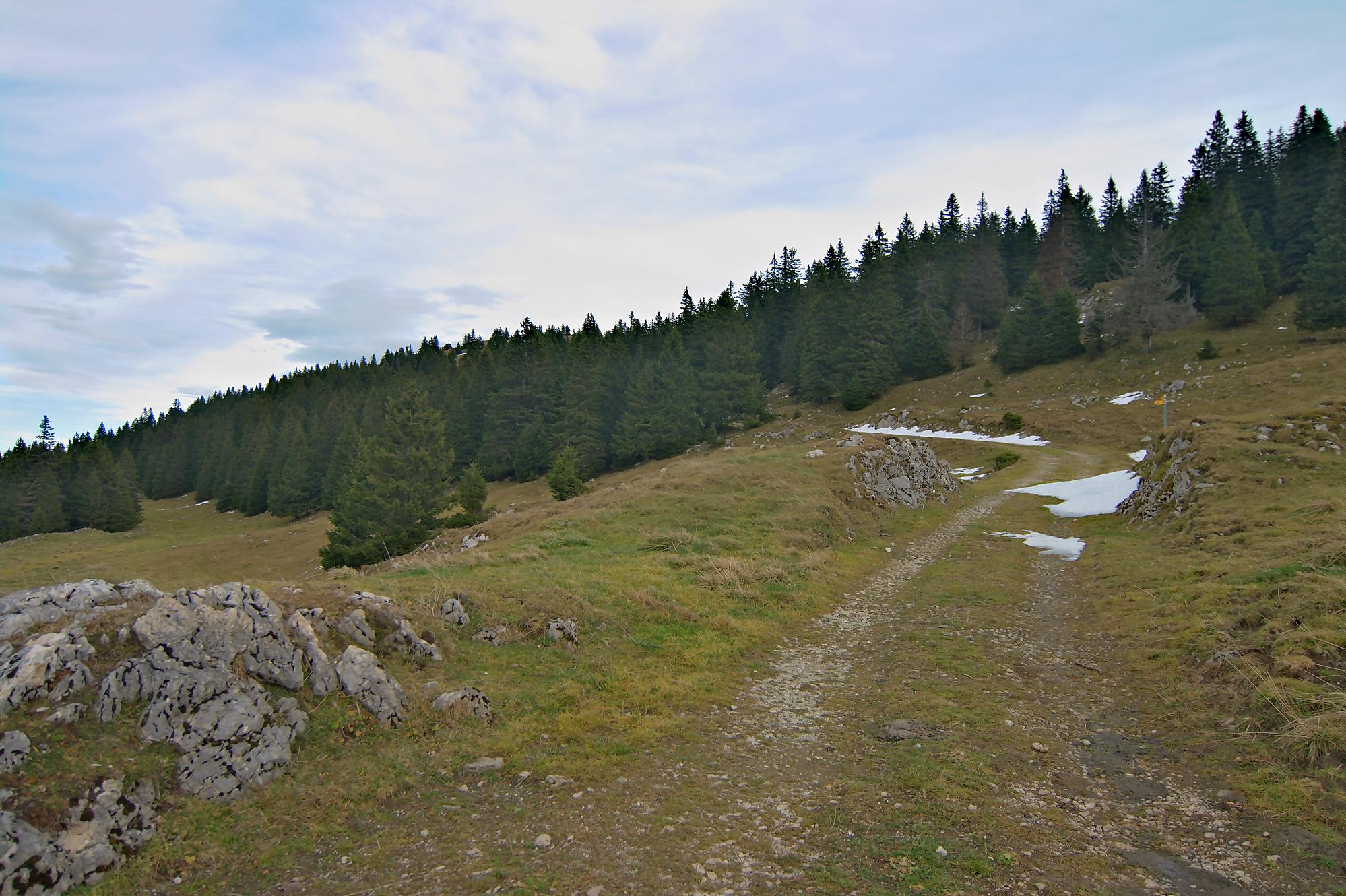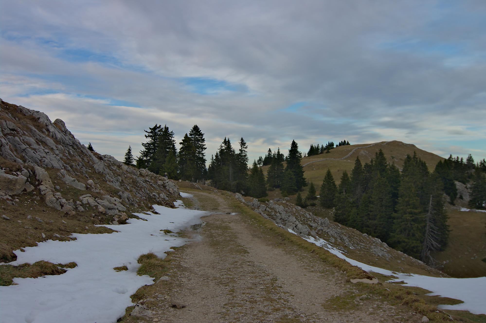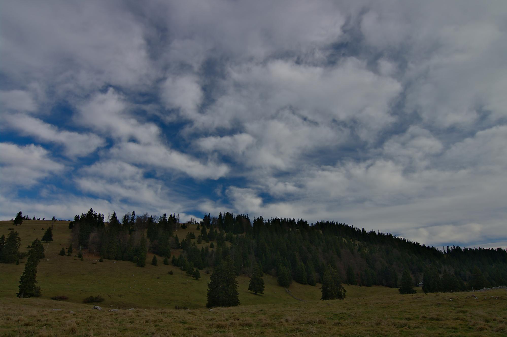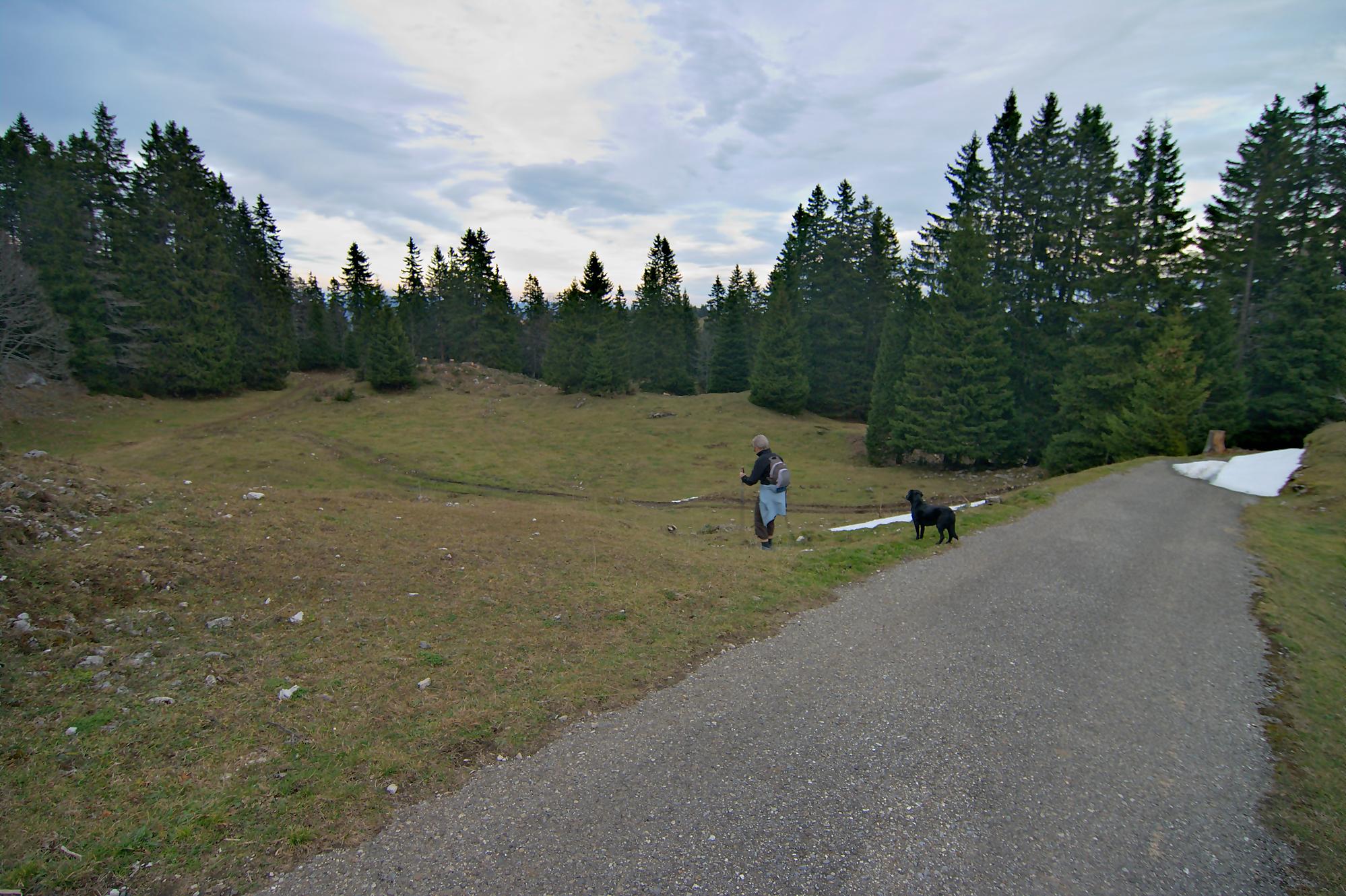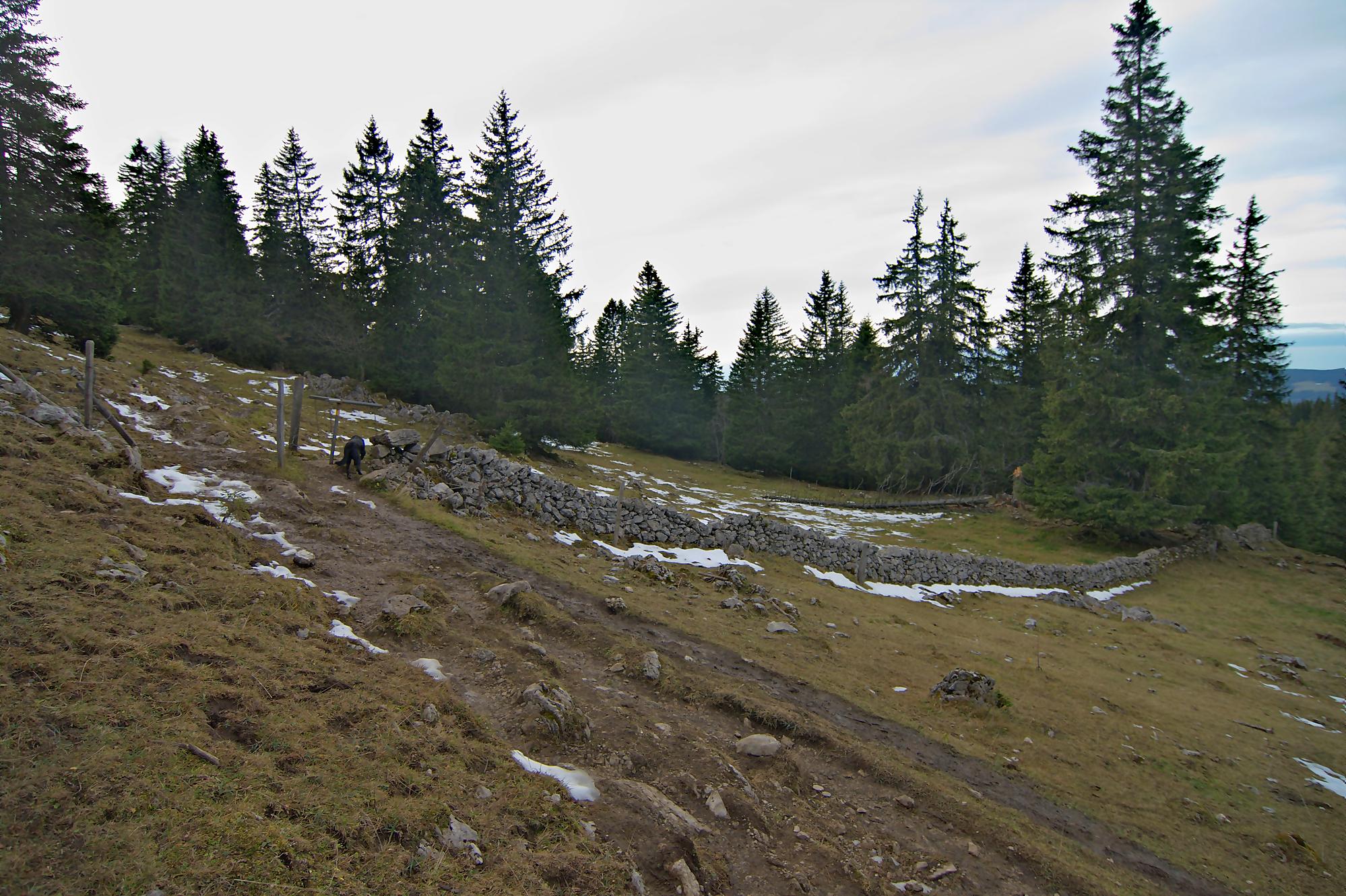 Ce dimanche, le matin fut bien ensoleillé. Le temps de manger avec Nouchka et partir pour le Mollendruz, le Jura se couvre d’un gros nuage. Nous laissons la voiture à Pré de l’Haut, le vent souffle bien et le soleil est bien caché. Je mets donc la softshell. Christian de son côté est parti depuis Montricher pour rejoindre Châtel et nous pensons se retrouver vers le Mont-Tendre, notre objectif du jour.