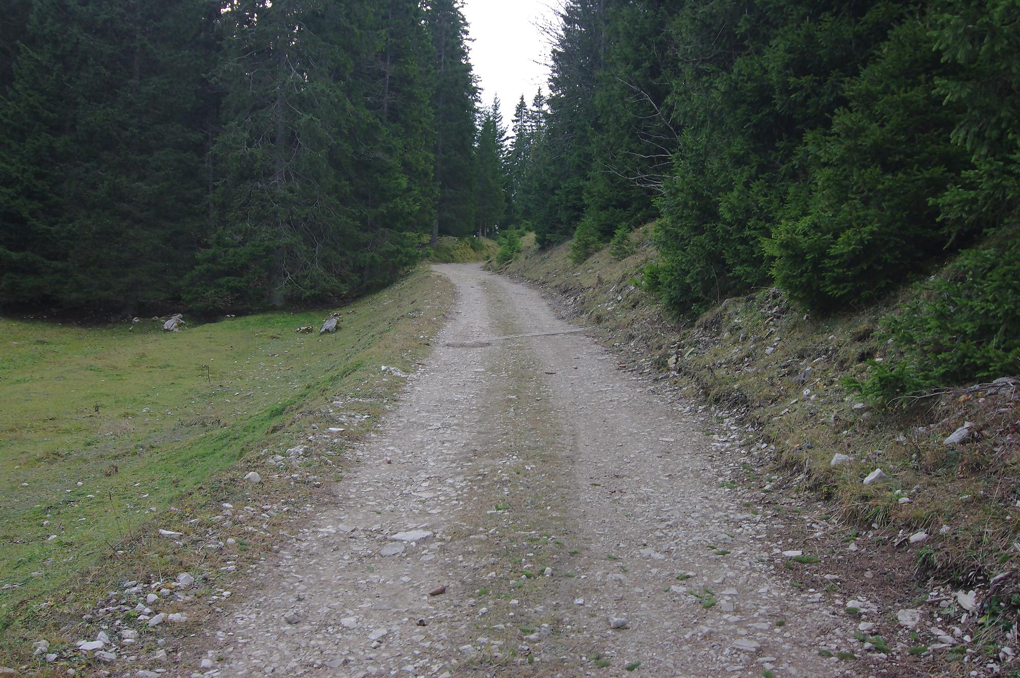 Nous partons par la route et apprécions que les arbres coupent un peu le vent. A Mazel (Pt1417 sur la carte, 1416m sur le panneau in situ), c’est un champ de bataille, plusieurs arbres sont déracinés, leurs racines sont quasi inexistantes malgré leur haute taille. Nous partons dans le sentier sur la gauche à travers champ, la désolation continue. En plus les nuages gris donnent une touche triste à ce tableau. Lorsque le réseau GSM redevient disponible, on se synchronise avec Christian, mais une incompréhension sur le sommet du rendez-vous (l’un a compris Châtel, l’autre le Mont-Tendre) annulera notre rencontre au sommet !