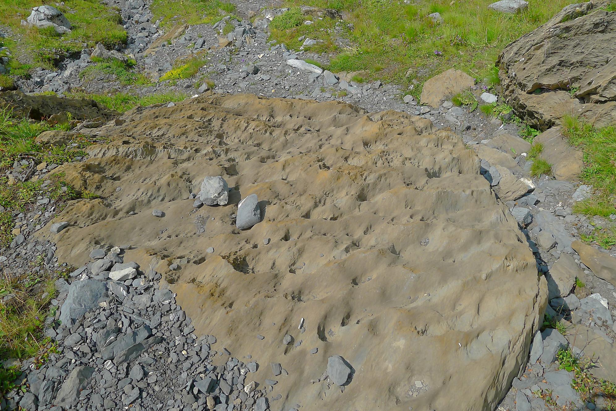La suite se fait sur la large crête jusqu’au Col du Sagerou puis en devers doux jusqu’à la Tête de Pérua. Dans notre dos, nous profitons de la vue sur le Mont Ruan et sur la gauche, nous apercevons brièvement une partie du Mont-Blanc avant que les nuages ne le cachent. L’herbe reprenant doucement ses droits sur les cailloux. Après la Tête de Péroua, le refuge de La Vogealle se découvre et nous marquons peu après une pause, profitons encore du soleil (pluie annoncée en fin de journée, c’est pourquoi nous sommes partis tôt : 9h à Champ de Barme).